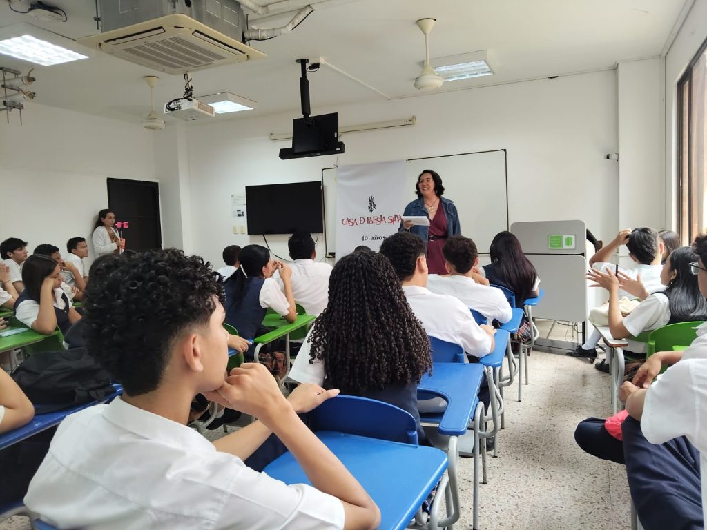 BARRANCABERMEJA, SANTANDER. – Con la charla titulada “40 años de una casa de poesía”, la Casa de Poesía Silva abrió su participación en la agenda académica de la Feria del Libro de Barrancabermeja 2025. La actividad, lejos de ser un solemne recital de versos, se transformó en una animada conversación con estudiantes de bachillerato. Fue impartida por Alma Castro Chávez, coordinadora de actividades culturales de la fundación, y se centró en la relevancia de la poesía como un fundamental medio de comunicación.