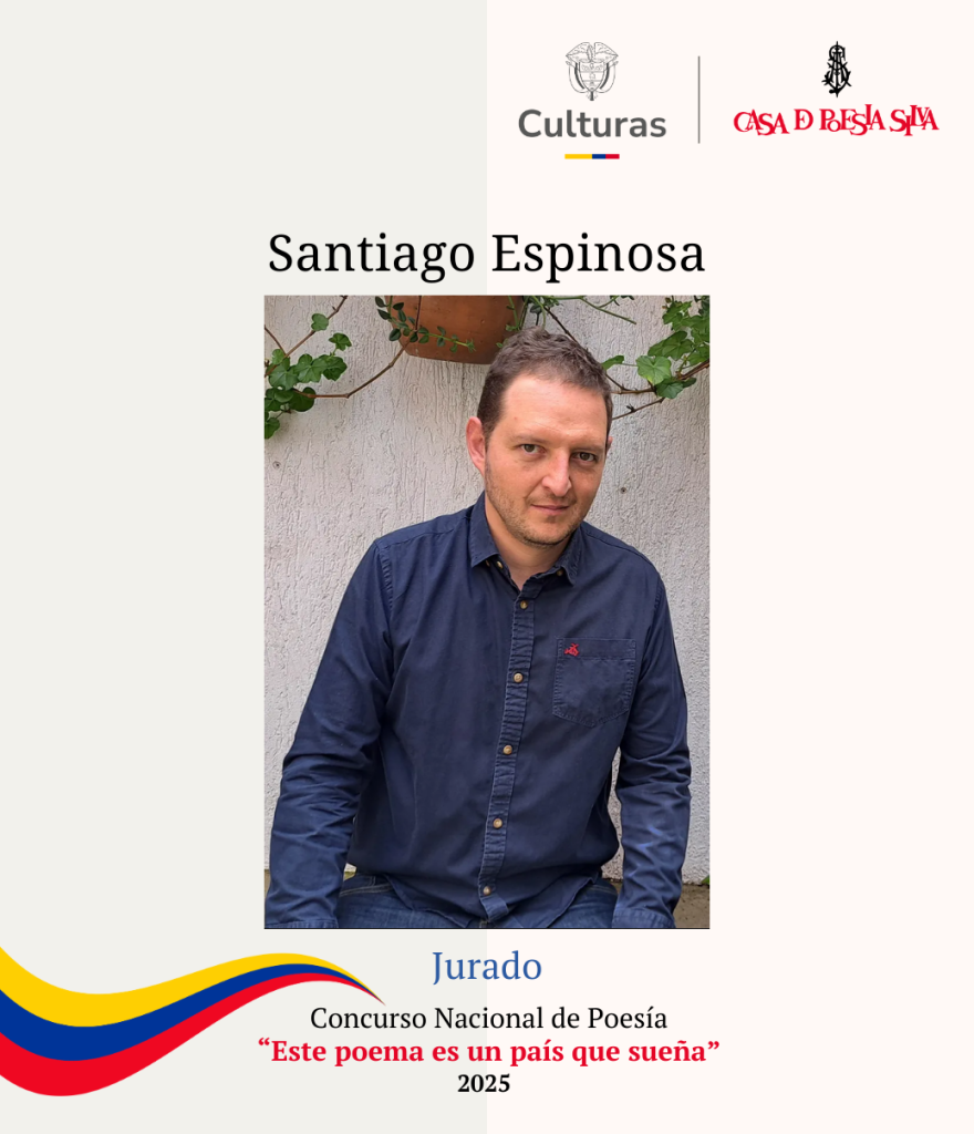 Santiago Espinosa: Poeta, ensayista y traductor bogotano, es una figura central en el diálogo sobre la poesía colombiana contemporánea, como lo demuestra su libro de ensayos Escribir en la niebla. Es profesor en la Universidad Central y dirige la Escuela de Maestros del Gimnasio Moderno. Su libro El movimiento de la tierra (2017) obtuvo el prestigioso Premio Internacional de Poesía Jaime Sabines en 2016.