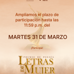 - Se amplía el plazo de inscripción para el Primer Premio de Poesía Letras de Mujer 2026